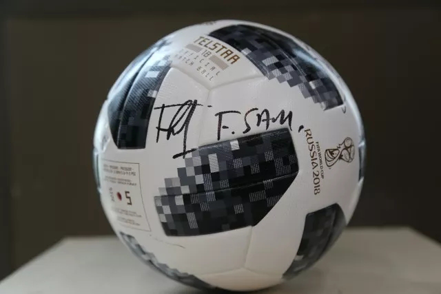 (图:国际足联秘书长法特玛·萨姆拉签名球)