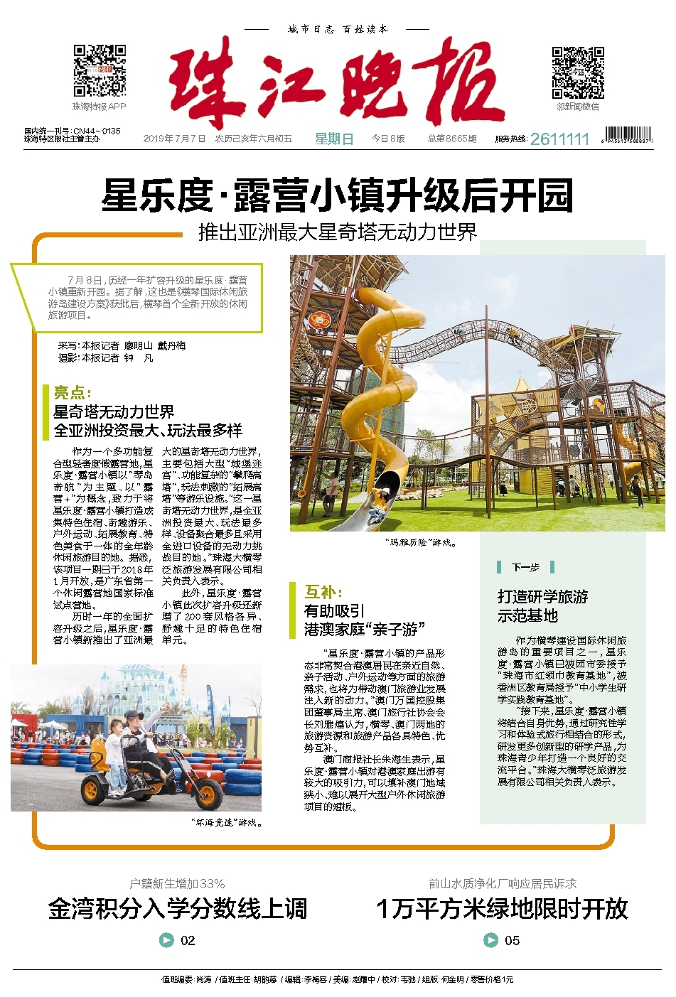 澳门商报社长朱海生表示,星乐度·露营小镇对港澳家庭出游有较大的吸引力,可以填补澳门地域狭小、难以展开大型户外休闲旅游项目的短板。