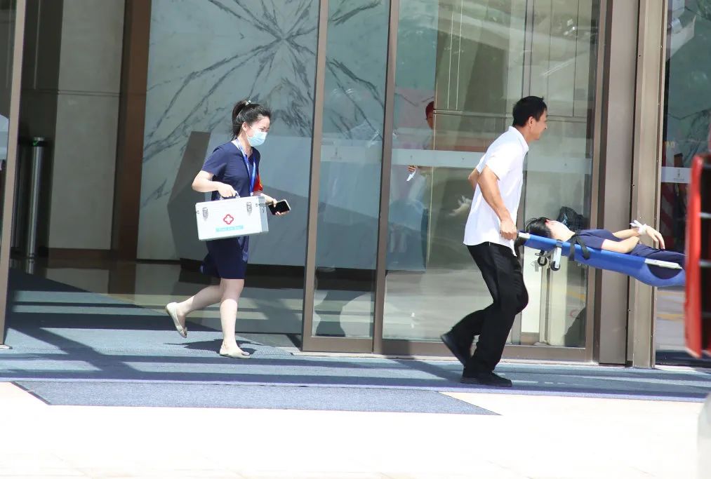 现场,设备保障组、疏散引导组、医疗救护组、勤务组、抢险灭火组、现场警戒组有条不紊地开展各项工作。经过17分钟的“战斗”,成功将 “火灾”扑灭,将“伤员”转移至安全区域,至此演练圆满结束。