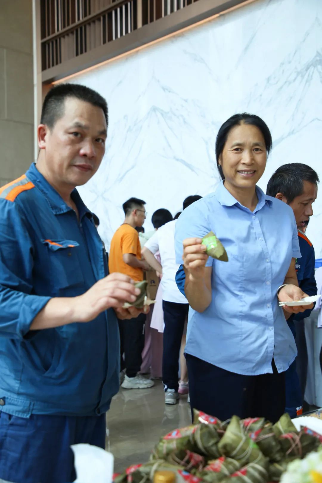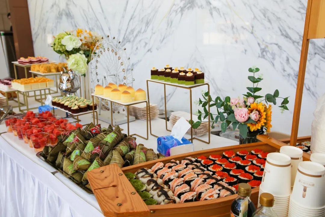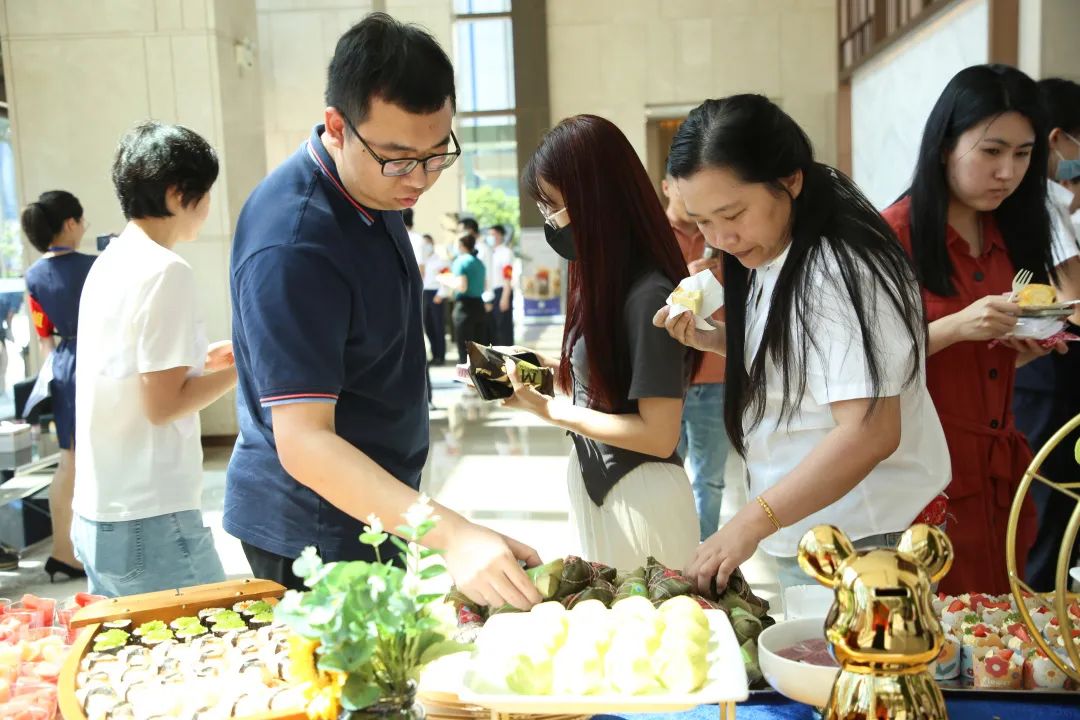 演练结束后,参与本次演练的业主们聚集大堂。bevictor伟德官网城资服务团队献上早已准备好的粽子、雪糕、寿司、糕点等美味茶歇,为业主们送去节日祝福和问候。