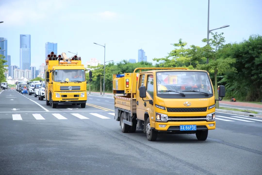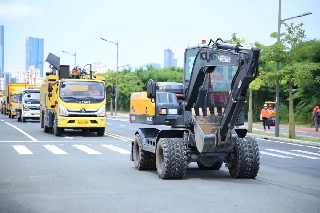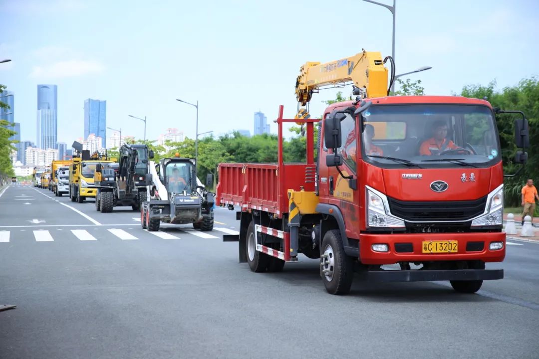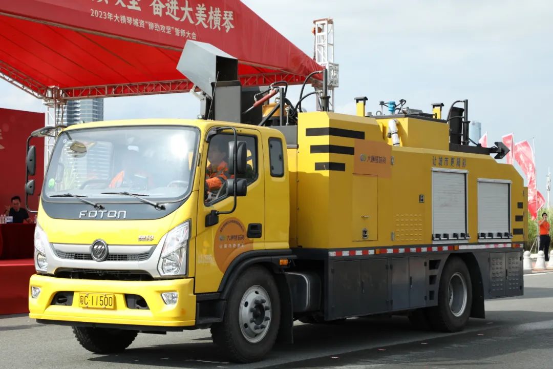 战旗飘扬,誓言铮铮,180余名城市服务工作者在横琴粤澳深度合作区爱琴路集结会师,35种100余台机械化装备轮番上阵显身手,一场斗志昂扬的誓师大会擂响下半年冲刺战鼓。