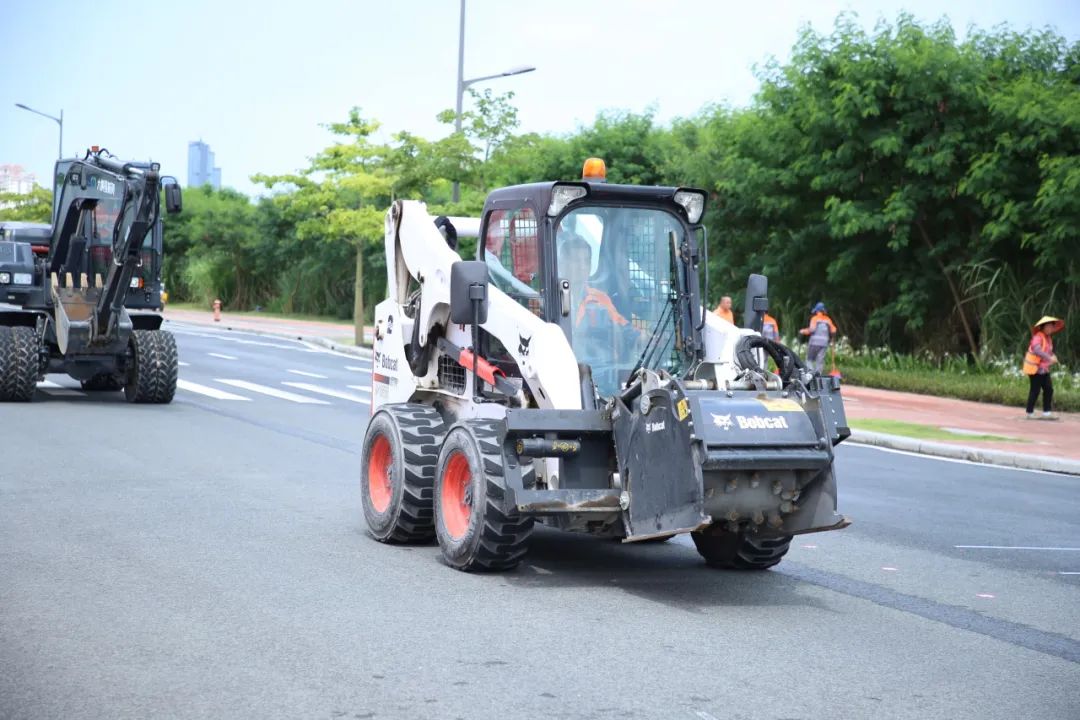 自带铣刨头、清扫头、铲斗的山猫车能高效协助沥青路面维修施工;高空作业车作业平台能实现载荷200公斤;水面清洁无人船每天清理覆盖面积约6万㎡;水面救援机器人通过手持遥控操作即可完成救援......