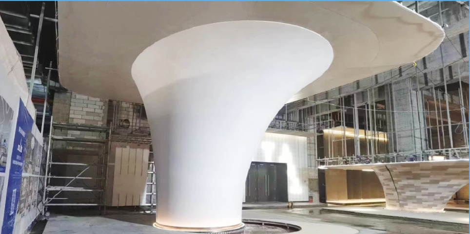 项目建筑设计以“映·韵”为设计理念,从横琴地名中获得创作源泉,汲取琵琶、古琴元素之灵感,将古琴的基本曲率抽象取形,形成建筑基本的曲线形体。从效果图上看,横琴天沐琴台外观建筑似一把横卧天沐河上的琵琶,在设计上采用了大跨度的超高空间、连续钢架屋顶结构以及巨大玻璃幕墙,以打造灵动的建筑曲线,形成连续开放的室外公共空间和活力街区。