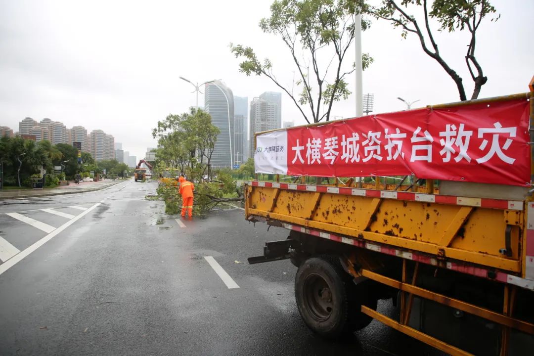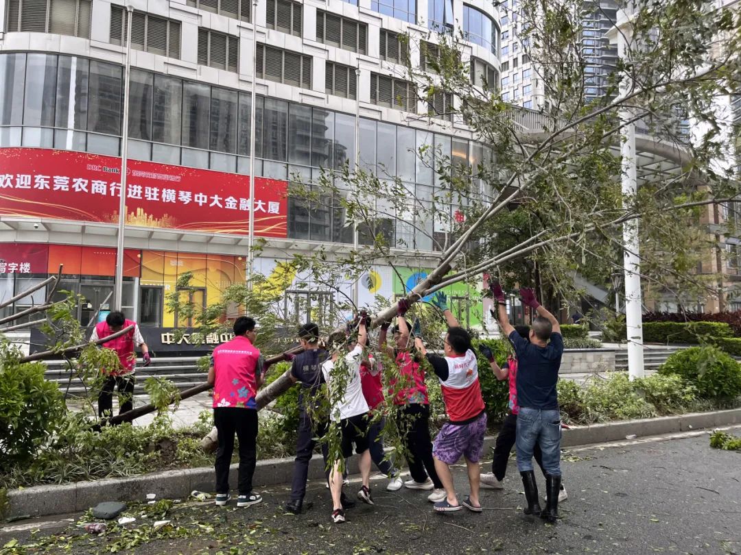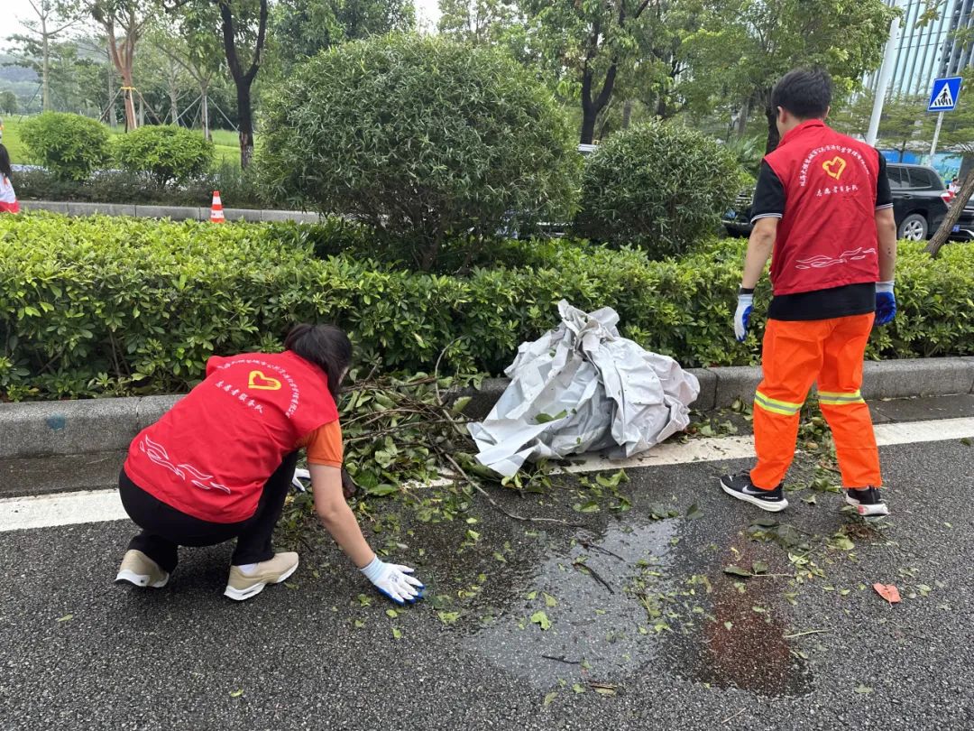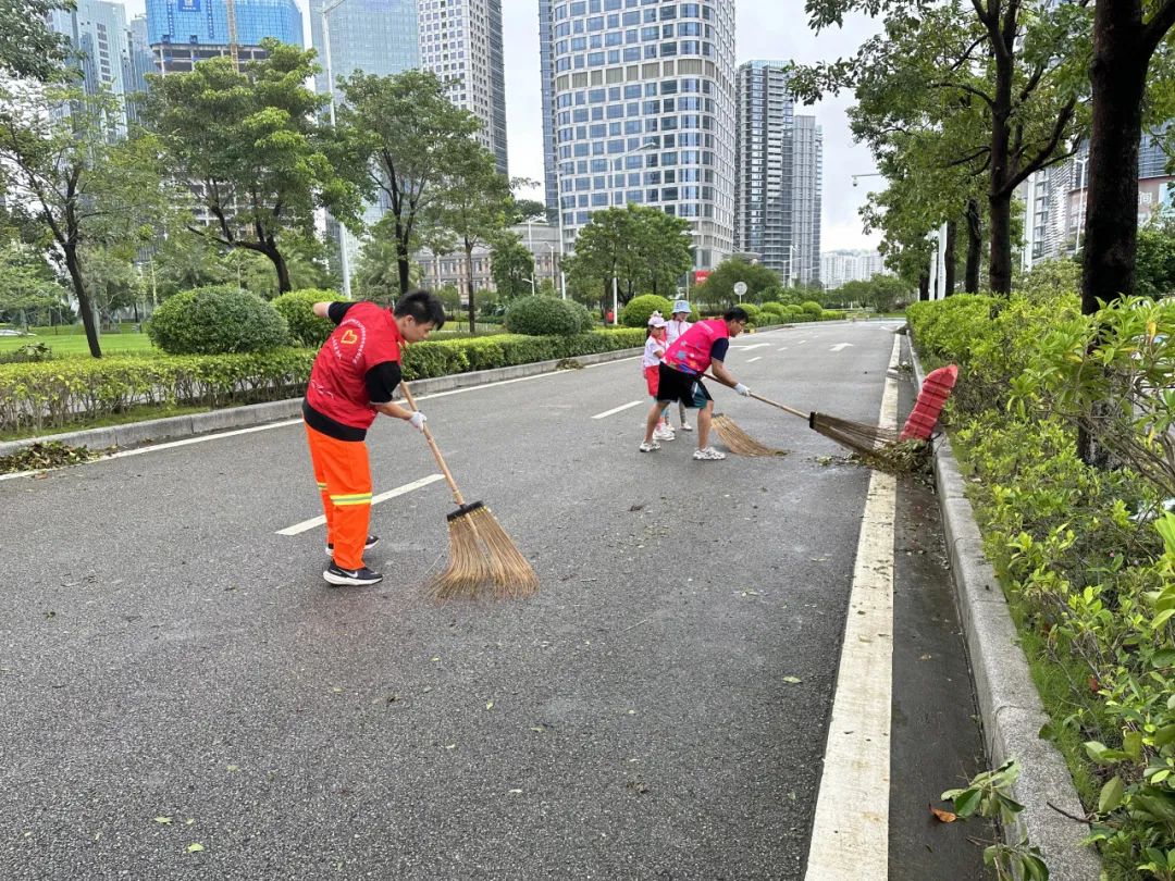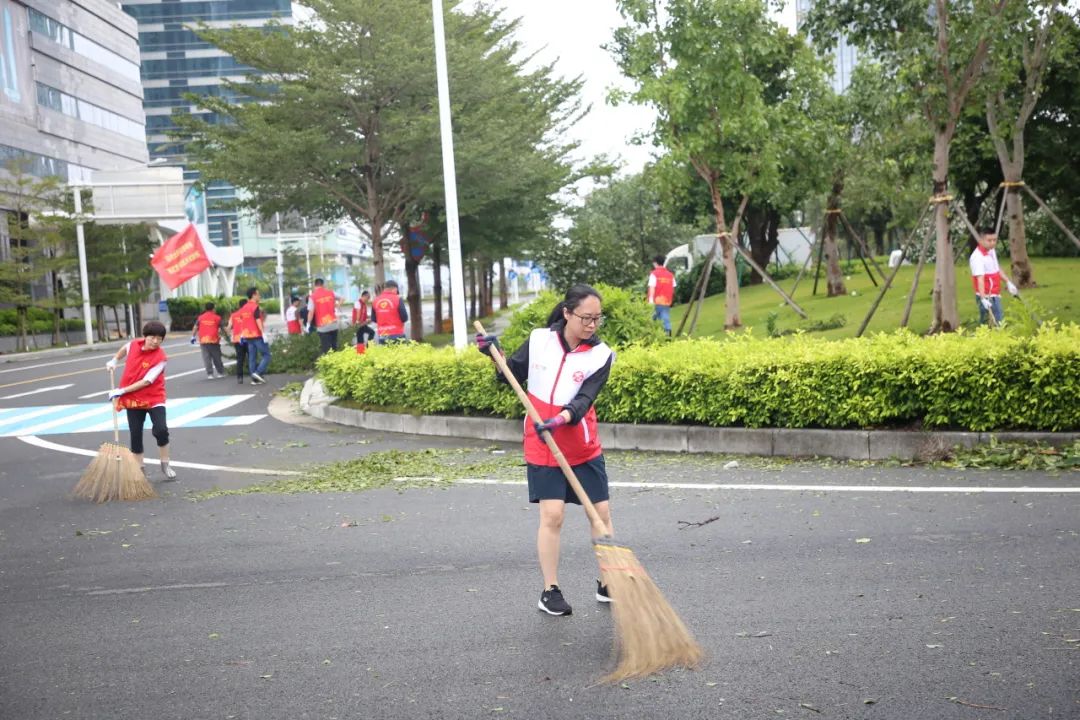 此次活动招募志愿者共60余人,志愿者们在合作区金融岛的汇通三路、汇通五路、十字门大道和荣珠道等地进行扶树木、扫马路、清垃圾等保障工作,全力筑牢灾后恢复工作的“红色堡垒”。