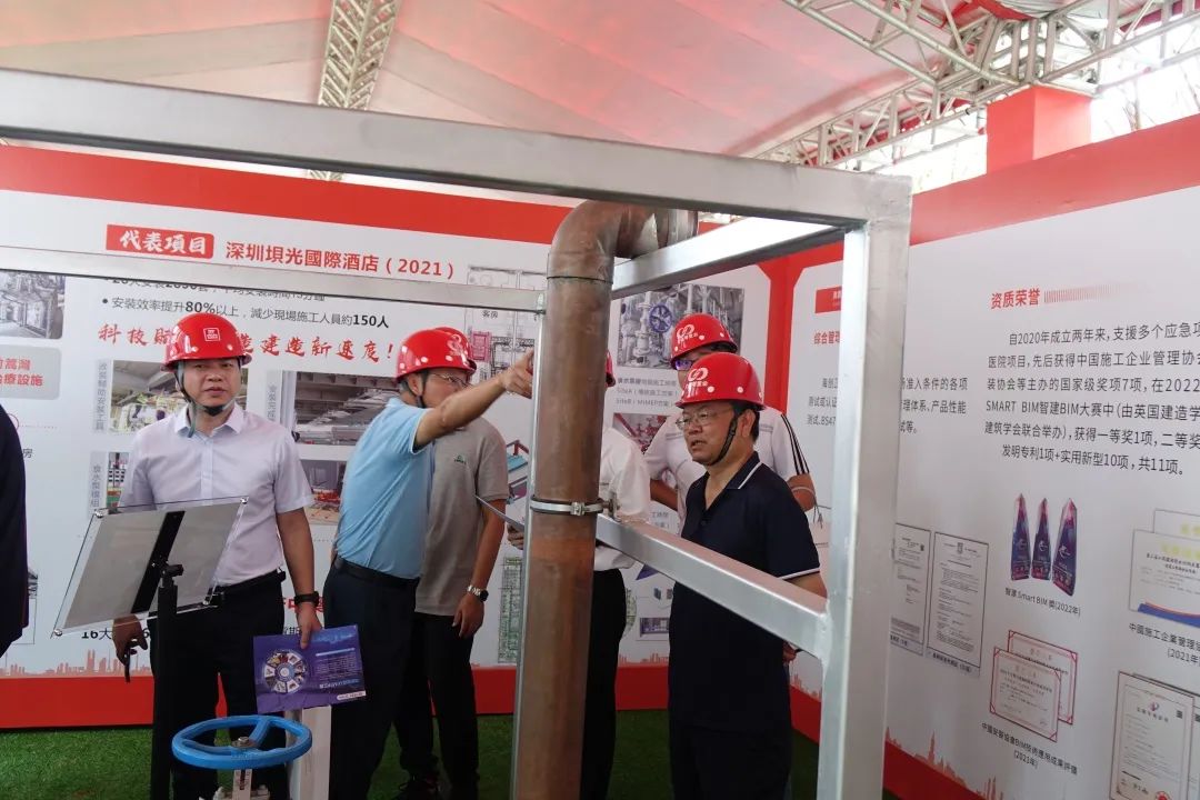 活动现场观摩交流了模块化集成建筑(MiC)、智慧工地、澳门建筑元素、安全体验区等展区内容,同时对工序样板房、交标样板房等进行了实地观摩学习。