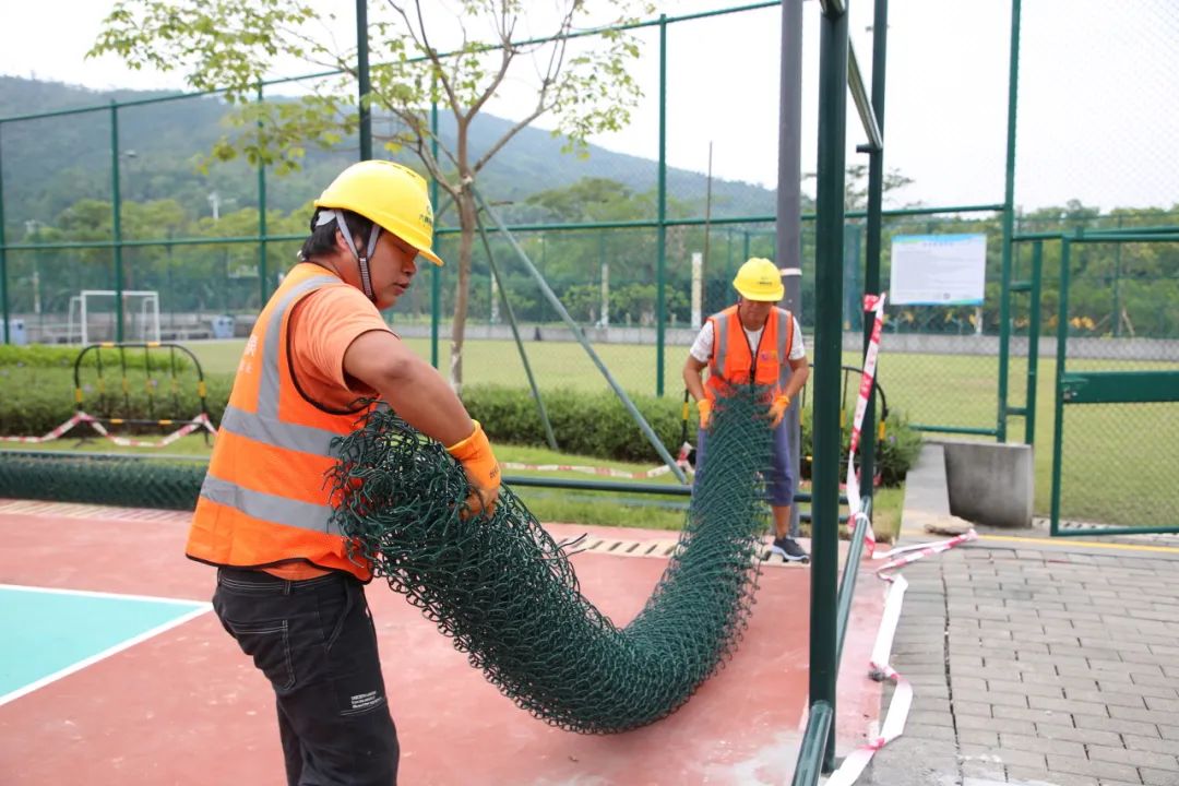 匹克球场围网换“新装”