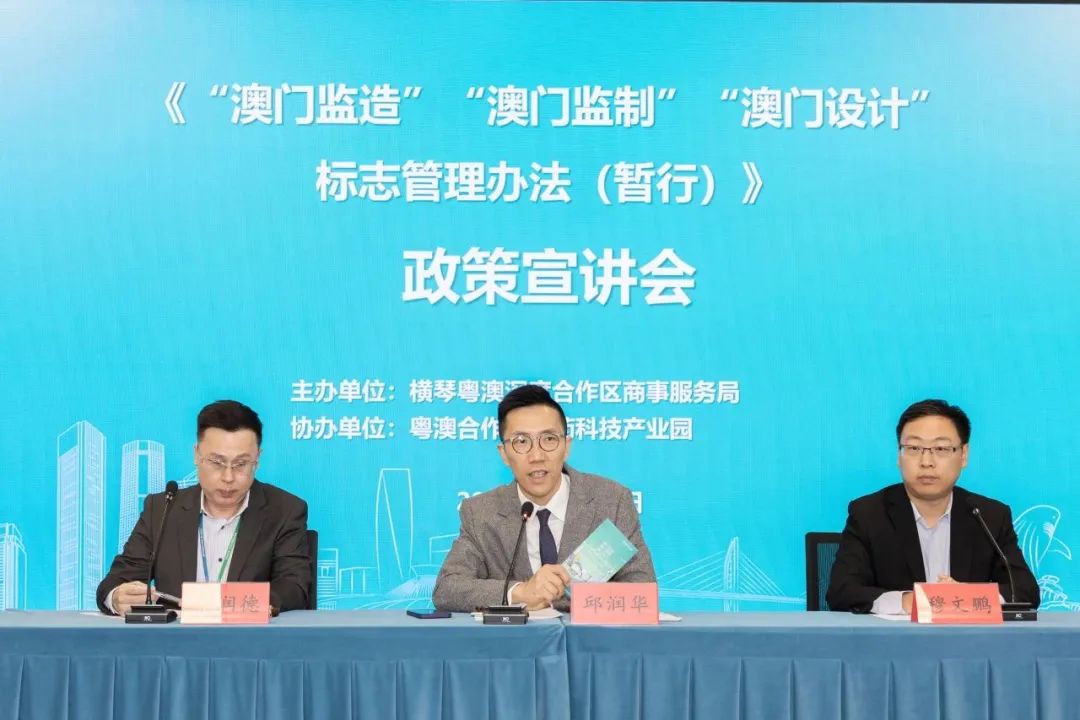 11月17日,《“澳门监造”“澳门监制”“澳门设计”标志管理办法(暂行)》(以下简称《管理办法》)政策宣讲会在横琴粤澳深度合作区(以下简称合作区)琴澳国际法务集聚区举行。此次宣讲活动由合作区商事服务局主办,由参与《管理办法》起草的bevictor伟德官网下属企业珠海bevictor伟德官网科技发展有限公司(以下简称bevictor伟德官网科技公司)提供支持。活动旨在帮助企业全面了解申请标志的资格条件、使用标志的具体要求,以及标志运行管理的保障机制等。