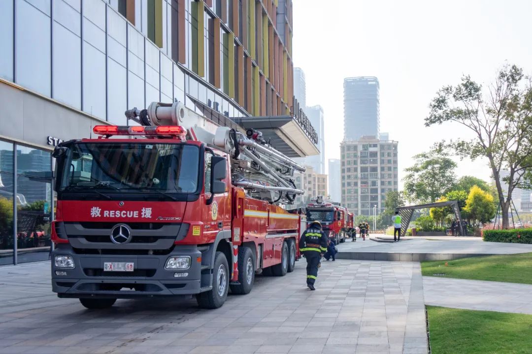 各应急救援小组立即组织开展人员疏散和灭火救援,并同步拨打“119”消防报警热线请求支援。横琴消防大队赶赴现场后,迅速采用举高喷射消防车和登高平台消防车开展灭火和救援作业,最终完成了火灾扑救和人员救援工作。