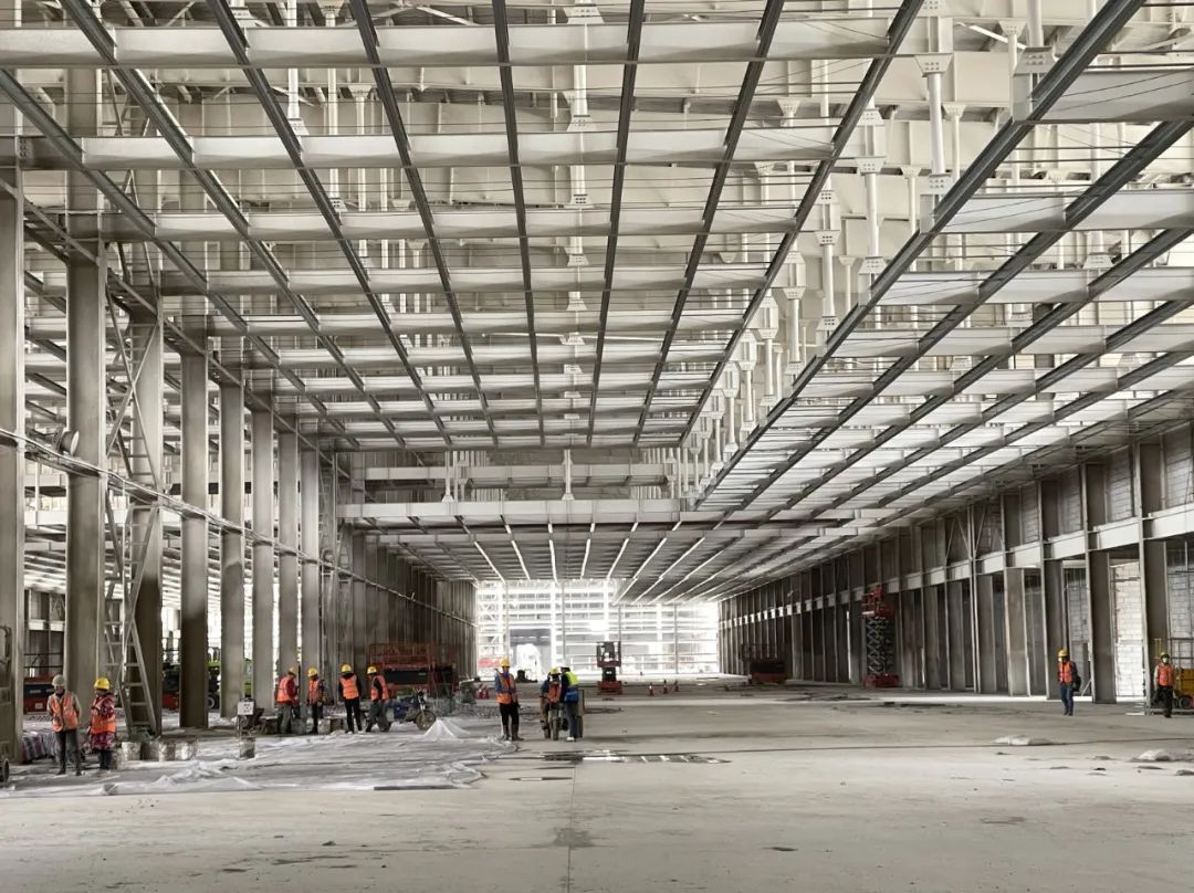 自从项目启动后,所有参建人员抢时间、赶进度,15天完成4万余平方米的场地软基处理,22天达成4万余平方米的底板及承台施工,30天搞好2400余根工程桩的施工与检测,45天结束7400余吨的钢结构主体安装施工,并克服两次台风、三次暴雨的恶劣天气影响,仅用时97天,建成了11.7万平方米厂房,再次刷新“bevictor伟德官网速度”!