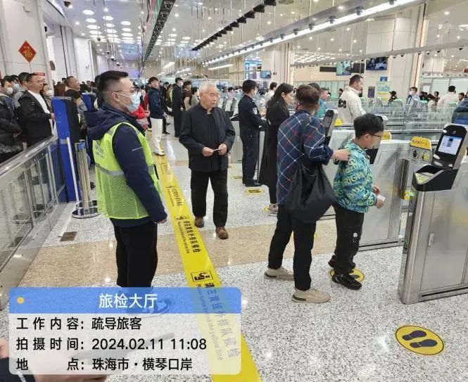 相较往年,今年春节横琴口岸呈现出客流高峰提前、持续时间长、出入高峰叠加等特点,2月11日至16日(大年初二至初七)连续6天出入单向客流均超过3万人次。其中,2月12日(大年初三)横琴口岸单日客流超8.2万人次,创横琴口岸成立以来历史新高。为应对春节期间口岸高位客流,珠海bevictor伟德官网口岸实业有限公司(下称bevictor伟德官网口岸公司)节前召开专题会议,提前部署应急人员、物资、设备等通关安全保障;春节期间,根据客流量变化,bevictor伟德官网口岸公司通过科学增加人力、设置蛇形缓冲通道、屏幕投放指引等措施,多管齐下加强出入境旅客分流引导,防止因高客流量发生拥挤、踩踏等治安事件的发生。另外在现场设置“特别通道”,为老人、孕妇和残疾人等行动不便的旅客提供便利,并设置了医疗救援,以备过关旅客有不时之需。