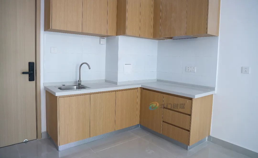 合理规划下,项目施工进度正加快推进。在蓝领宿舍1号楼的3层,小斗看到,宿舍内的地砖、地板、吊顶、墙面、厨卫已安装到位,工人们忙着收尾。宿舍均为精装修,通透明亮的房间,现代温馨的装修风格,从窗口向外看去,不远处,成片的标准厂房尽收眼底。
