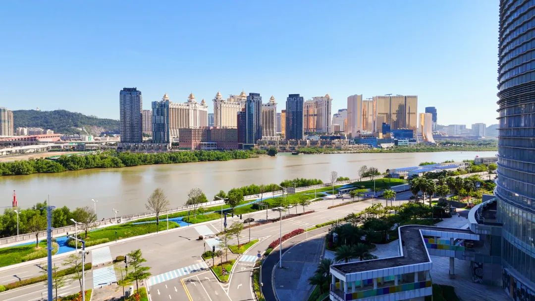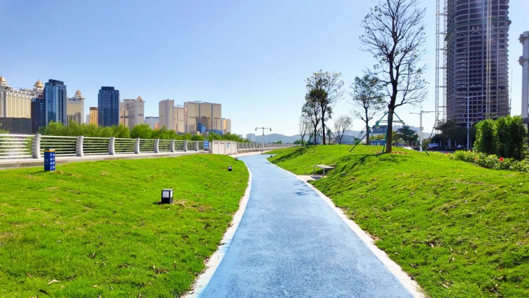琴海东路位于横琴岛东侧,沿濠江而建,全长4.8公里,与澳门隔江相望,这里自带“滤镜”,是横琴游客观光打卡的绝佳之地。