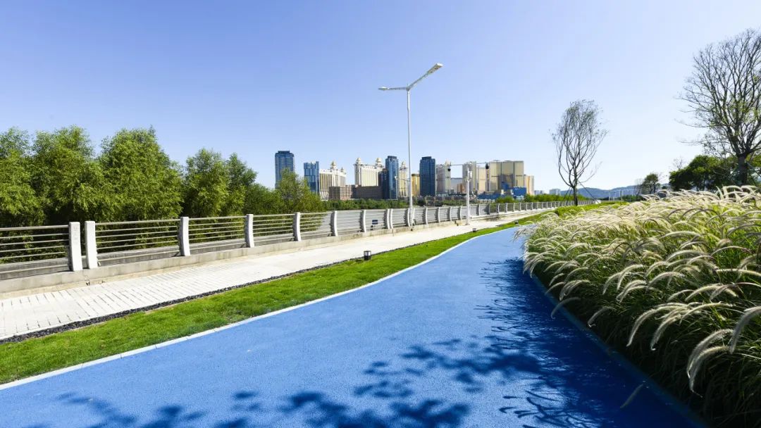 徜徉在沿岸游憩步道上,一抹绿色、一簇鲜花、一处灌丛,目之所及,心旷神怡。