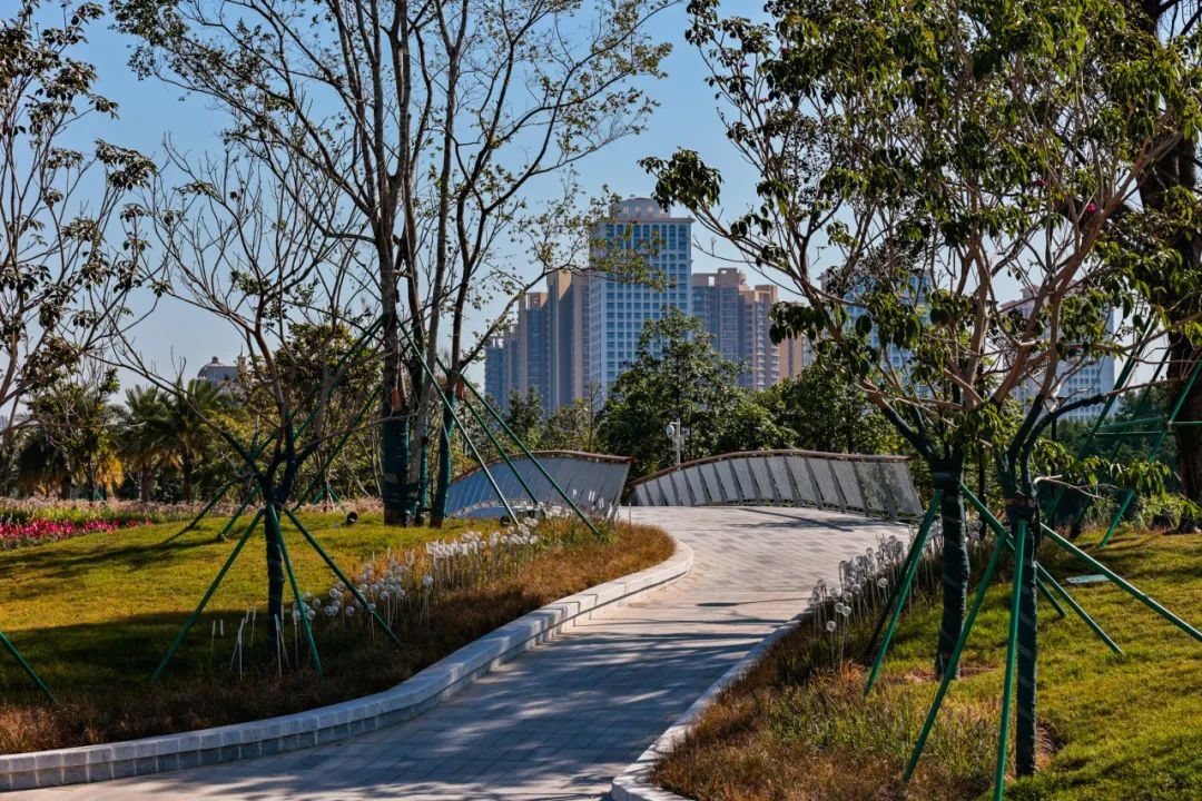 北岸利用现有的自然绿地,打造交通便利、内外联系通畅的滨水地带,并结合“榕荫椰影”的植物主题,新增多个林荫平台,提供自然与人文共享的活动空间。