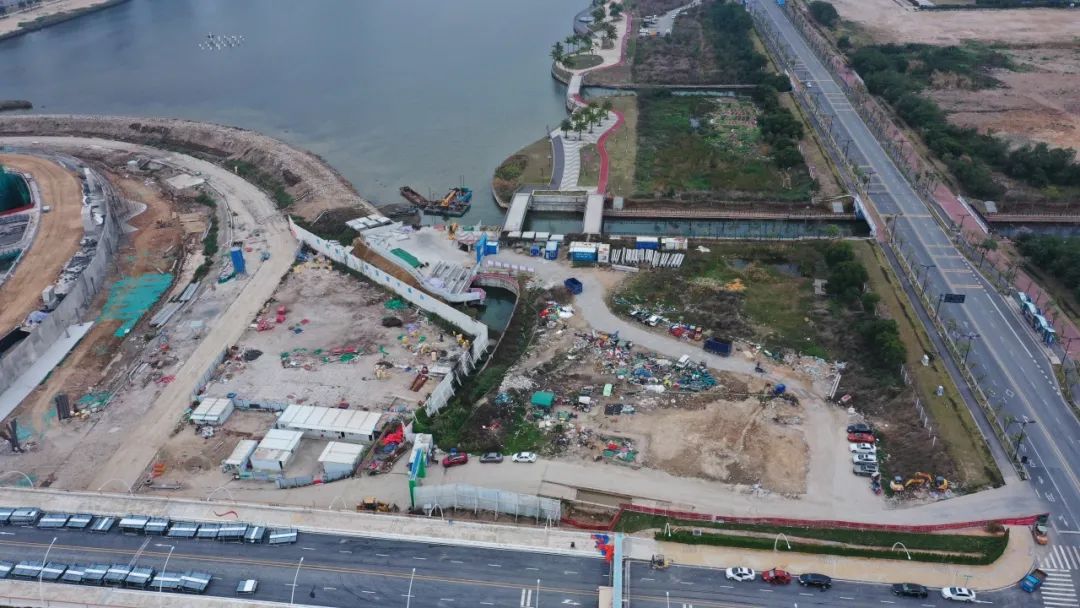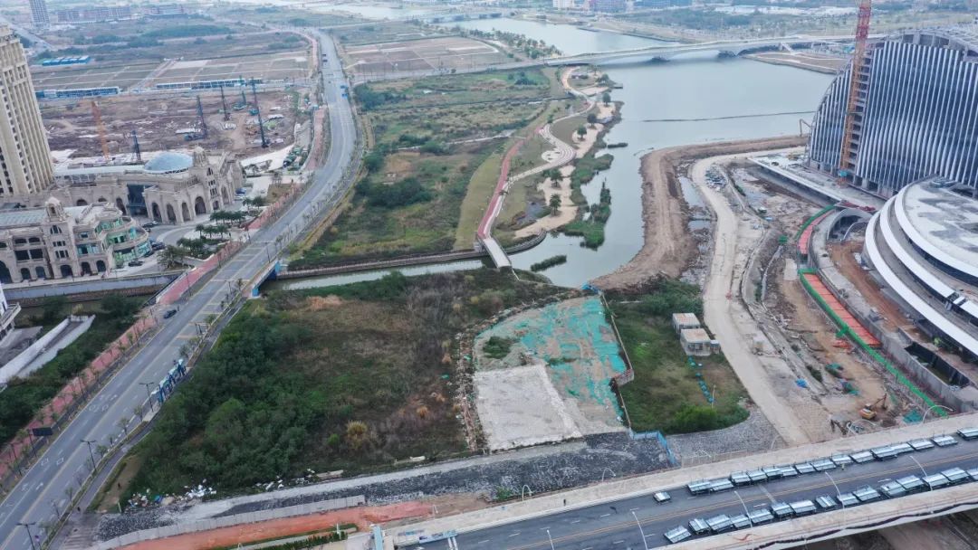 天沐琴台位于横琴粤澳深度合作区天沐河中央,地处横琴的核心地带。而天沐琴台周边天沐河两岸景观提升项目场地正位于横琴粤澳深度合作区天沐河东段(天沐琴台项目区位段)南北两岸,双双桥横跨其上,东西两端衔接现状天沐河堤岸景观带。