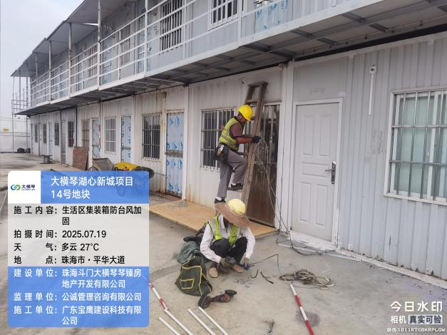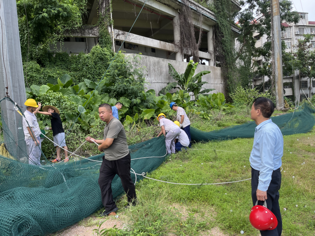 宝鹰建科迅速组织对所有在建项目的大型机械设备、工地的活动板房(办公区、生活区)、围挡、加工棚、安全网等临时设施进行全面检查和加固。对所有工地的临时用电线路、配电箱(柜)进行排查,台风来临前切断除应急照明、排水设备外的所有非必要电源,防止触电和电气火灾事故。