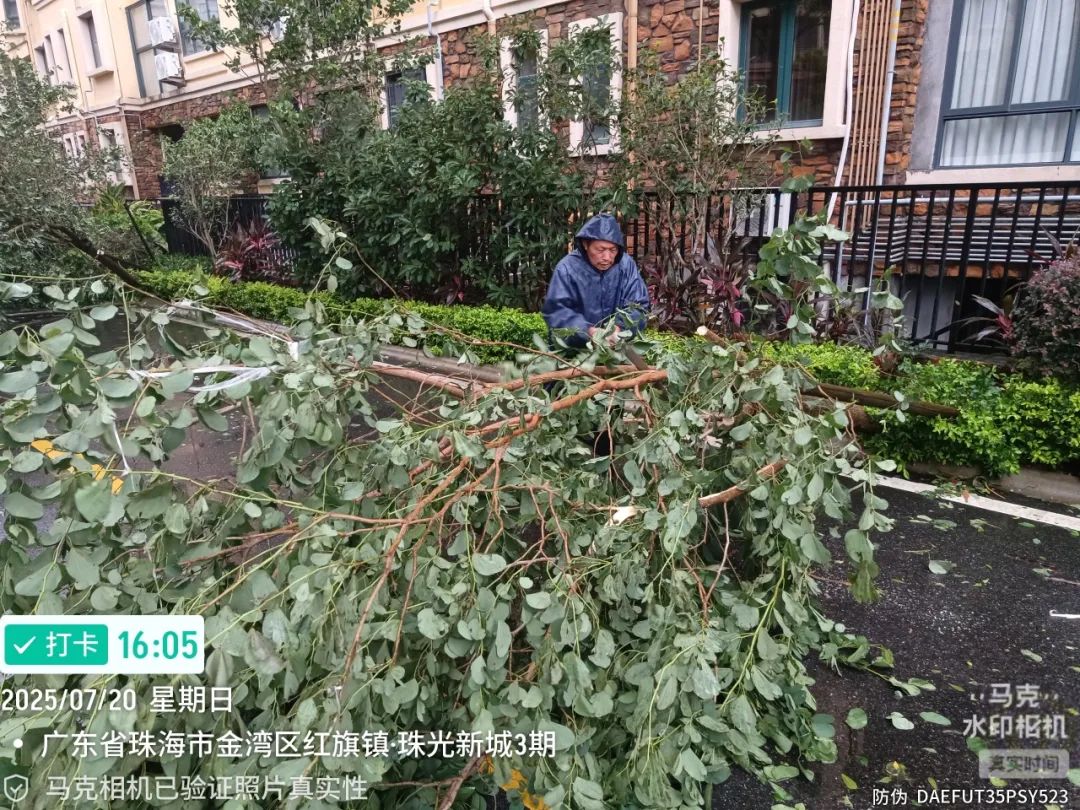 珠光物业公司迅速行动,全力以赴抓好台风防御各项工作,安排人员加强值班值守,全面开展隐患排查、加固设施、防汛排水等工作,同时通过微信等线上渠道保持与业主的紧密联系,及时发布台风信息及安全防范指南。台风逐渐远离后,物业工作人员加紧进行抢险修复工作,坚决守牢业主生命安全底线。
